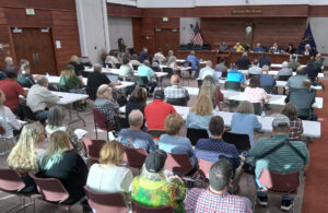 The meeting room at the county administration building was filled with people, many of whom were there because of the rezoning request.