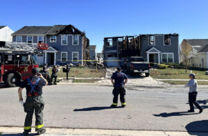 The house, now open to the sky with upstairs floors burned through, is in the Enclave section of Heartland Crossing in Madison Township near Morgan County’s northern border. The early morning blaze spread to three other closely spaced houses in the 13000 block of Cardonia Drive.
