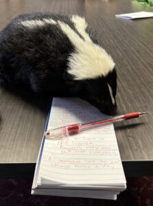 The office was in no danger from Sylvia, though — the domesticated skunk has been de-scented, meaning the scent glands in her anus have been removed. Though the women from Trails End would encourage all to be unafraid, regardless.