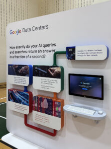 Another booth was concerned with the potential for noise pollution, a topic frequently mentioned at protests and public meetings concerning data centers. Many data centers are said to be quite noisy, and are sometimes associated with negative health effects due to the noise.